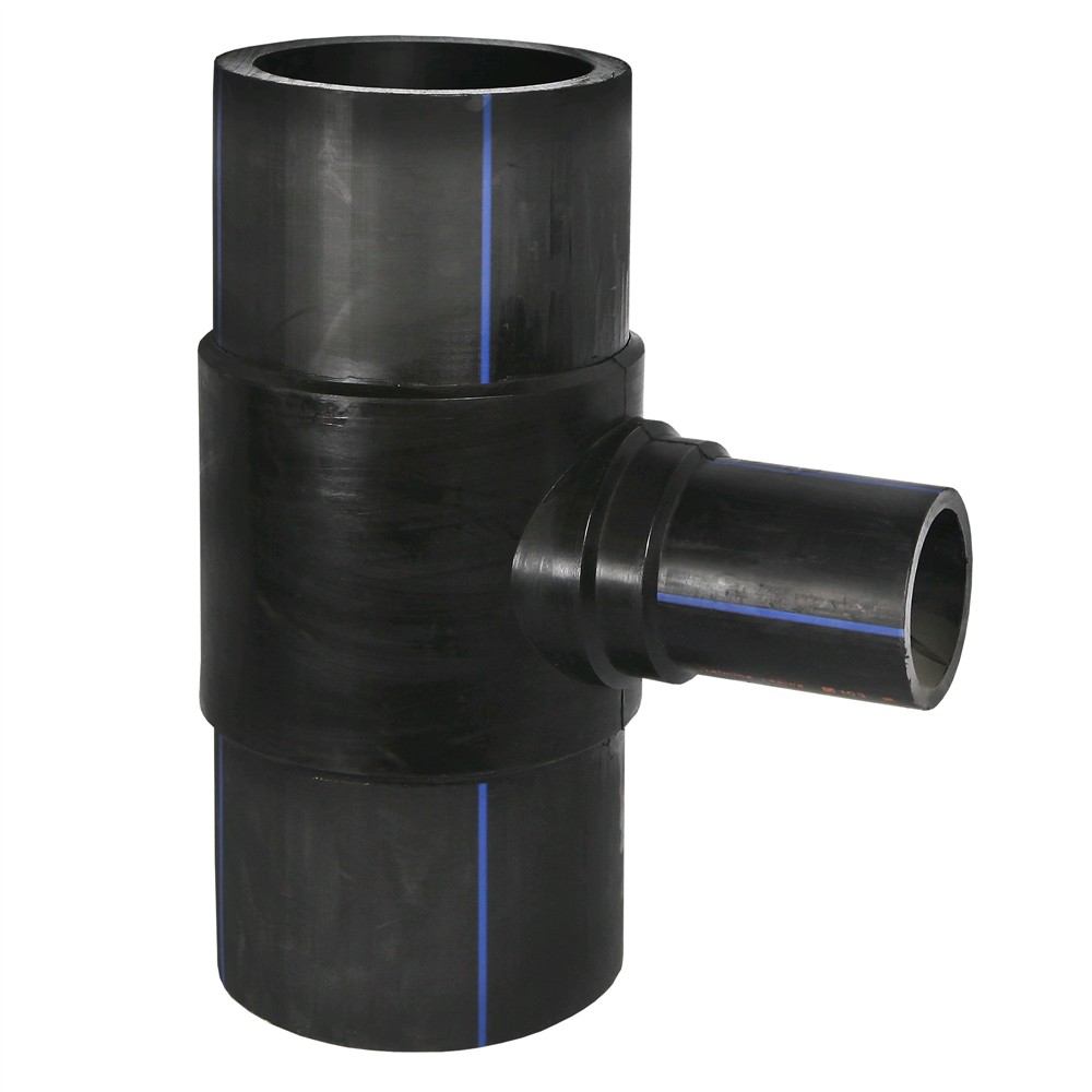 Tee reduced HDPE Ø 200x110x200mm with angle 90° used widely today in Europe for angular lines installations of water supply infrastructure and lines for the transport of natural gas. The tee reduced mounted by the method Butt-fusion. Tee enables reduced network branching of HDPE pipe Ø 110 from main pipe HDPE Ø 200. For welding HDPE pipe with tee used welding heat machinery which makes it possible merger of tee pages and pipe and through pressure enables their union. Manufactured with European standards, resistant to corrosive materials, high resistance to deformation of land and resistant to pressure up to 10 Bar.