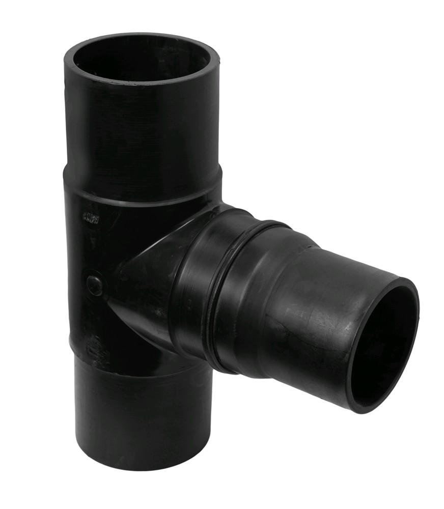 Tee reduced HDPE Ø 140x125x140mm with angle 90° used widely today in Europe for angular lines installations of water supply infrastructure and lines for the transport of natural gas. The tee reduced mounted by the method Butt-fusion. Tee enables reduced network branching of HDPE pipe Ø 125 from main pipe HDPE Ø 140. For welding HDPE pipe with tee used welding heat machinery which makes it possible merger of tee pages and pipe and through pressure enables their union. Manufactured with European standards, resistant to corrosive materials, high resistance to deformation of land and resistant to pressure up to 10 Bar.