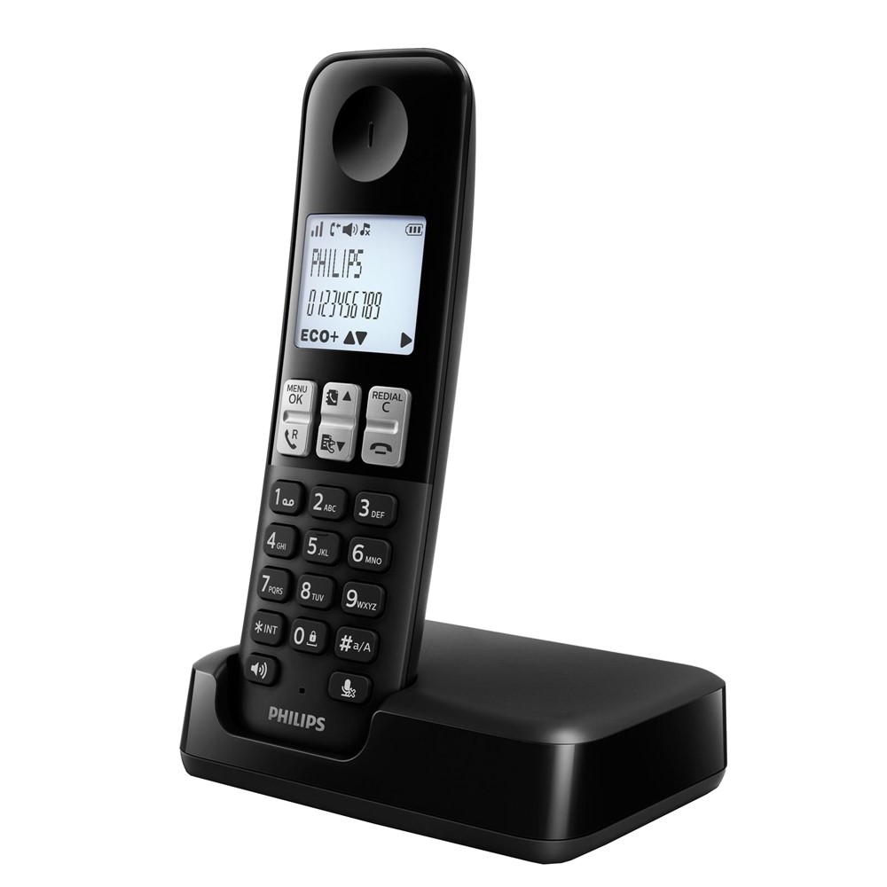 The Philips D250 cordless phone offers high quality sound and a large, clear display in a slim, ergonomic design. Use smart privacy modes and enjoy great comfort and great sound, all hands-free.