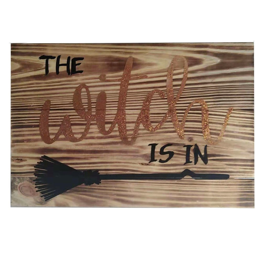 This hanging witch in board will add a frightful element to your home this Halloween season.