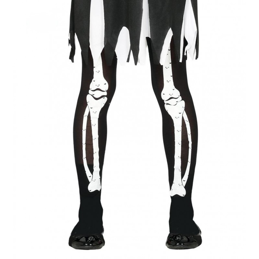 Children's tights with skeleton design. They are black and white. Ideal for Halloween.
