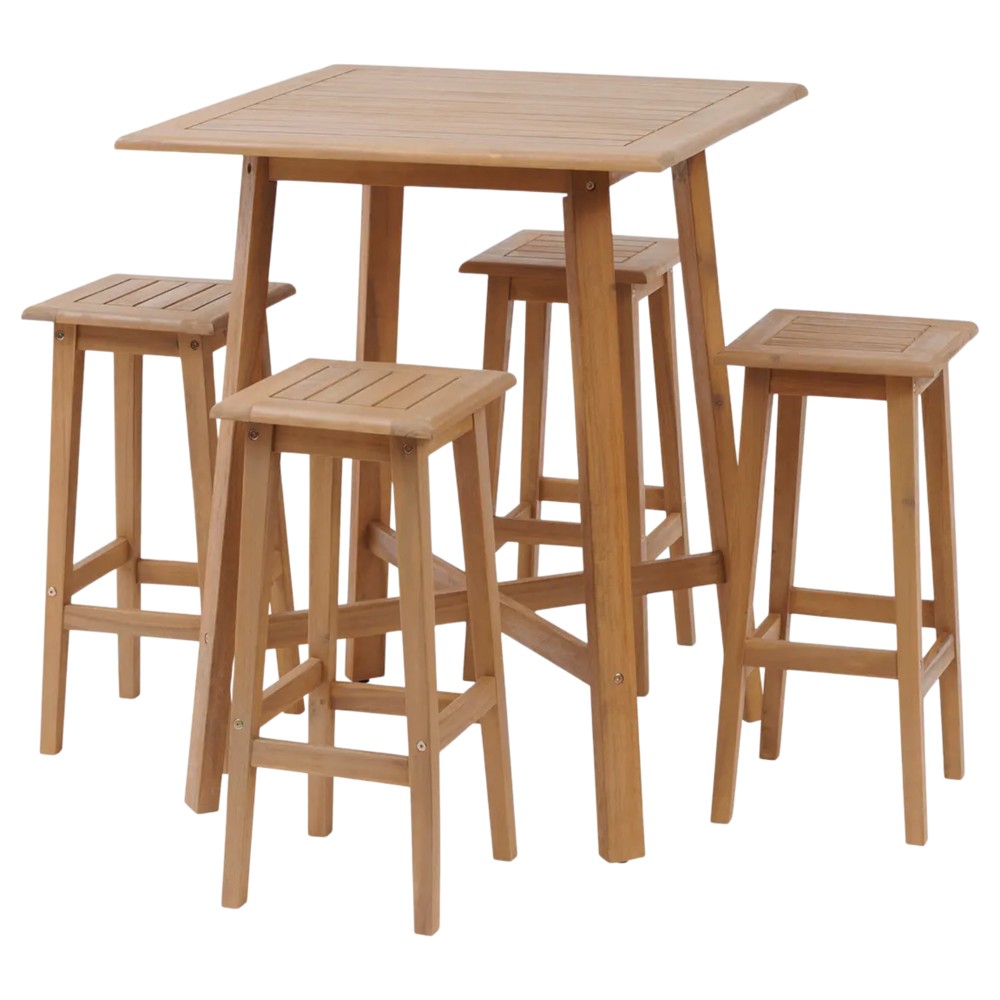 Tiwi bar table + stool set, tropical Acacia wood, natural color, table 800x800x1020 mm, chair W320x320x710 mm