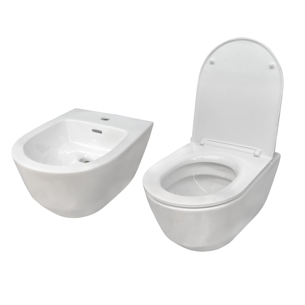The modern style of the Pro-Rimless, wall-mounted set blends well with its elegance and durability. Designed in clean lines, this WC and Bidet set offers the ideal size-shape ratio that meets your needs. The toilet seat and fixing accessories are included in the package to simplify assembly. WC dimensions, screw axis 18 cm, 53x36 cm; Bidet-53x36cm