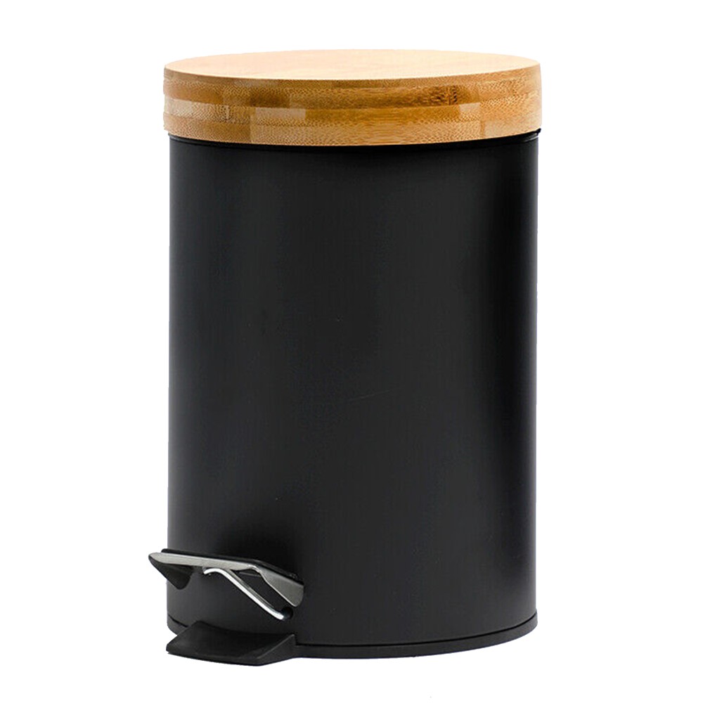 Toilet basket, 3L, metal/bamboo, black, 16.8xH25cm