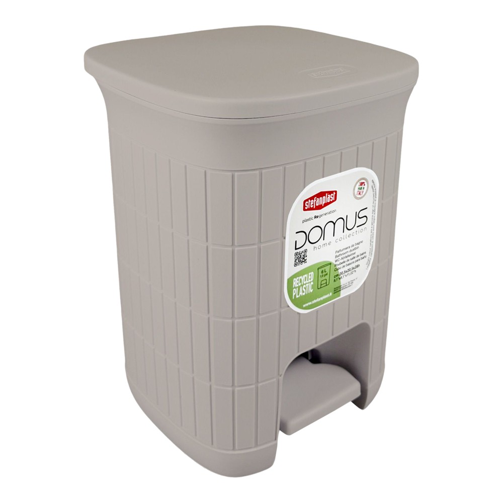 The DOMUS toilet bin with a capacity of 6 liters is made for those who want to combine functionality, aesthetics and quality. The surface has a refined texture, making it a decorative element as well as a functional one. The material used is high-quality recycled plastic. The lid and pedal opening ensure maximum hygiene, while its compact size makes it perfect for any bathroom.