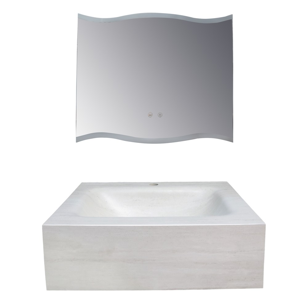 Wall-mounted bathroom furniture set, made of synthetic stone, with compact cabinet dimensions W 80 x D 50 x H 20 cm and mirror W 60 x H 60 cm. This set is designed to offer modern style and high functionality in limited spaces. The wall-mounted cabinet creates a "floating" effect, allowing for ease of cleaning while maintaining an elegant appearance. The synthetic stone material is resistant to moisture and offers a smooth, easy-to-clean surface. The mirror complements the overall aesthetic and offers a clear and bright reflection. This set is ideal for modern bathrooms that require a combination of functionality and aesthetics.