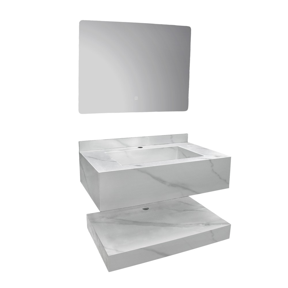 • Set includes: Upper cabinet, Sink, Lower cabinet, LED mirror