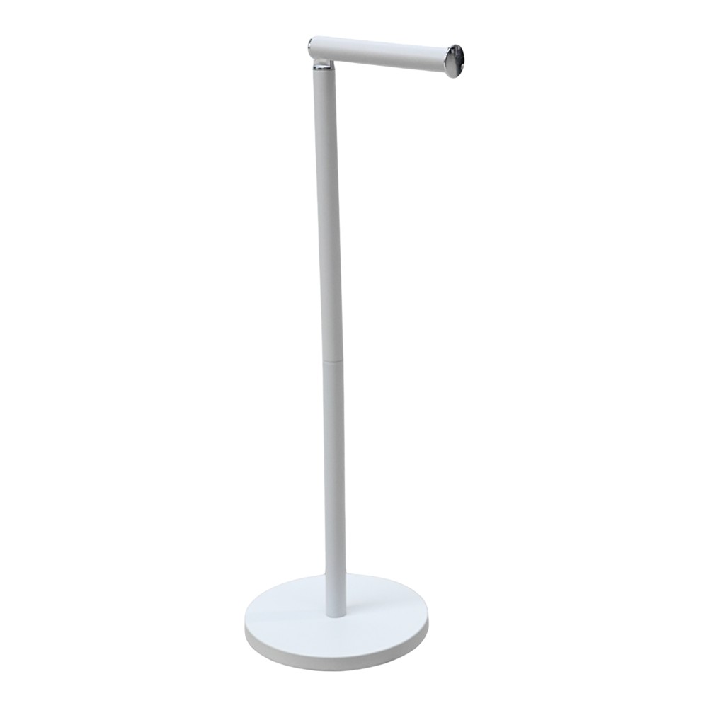 White metal toilet paper holder with a minimalist and functional design. Measuring 16.7 cm in diameter and 55.7 cm in height, it is ideal for easily storing toilet paper in your bathroom. Made from high quality metal, this holder is highly durable and resistant to rust.