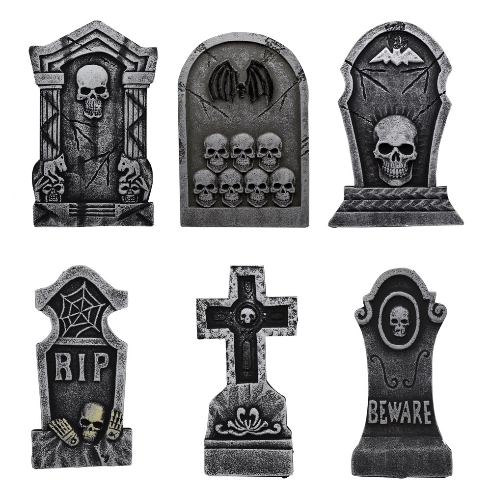 Get ready to turn your front lawn into a graveyard this Halloween with this Cemetery Kit. The kit includes styrofoam tombstones which have four plastic stakes (two per tombstone). These plastic stakes are used to stick the tombstones into the ground. This kit will get you set to terrify your neighbors!