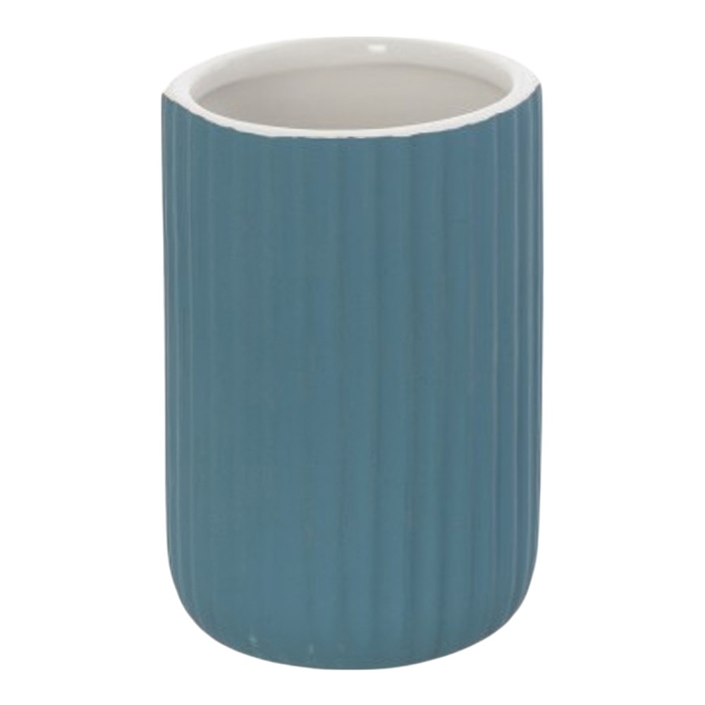 Color toothbrush holder produced by FERIDRAS in high quality ceramic material. Its blue color fits easily with all types of furnishings. This accessory does not need assembly as it rests on the furniture. Complete the set of accessories with the ''Color'' line. Dimensions, height : 11.5 cm, diameter : 7 cm.