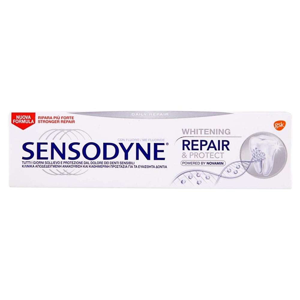 Toothpaste for repair and protection, with whitening effect, for sensitive teeth. It is used to protect teeth from dirt and bacteria, remove unpleasant mouth odors and restore the natural whiteness of the teeth, while removing stains caused by food. This product is suitable for daily use.