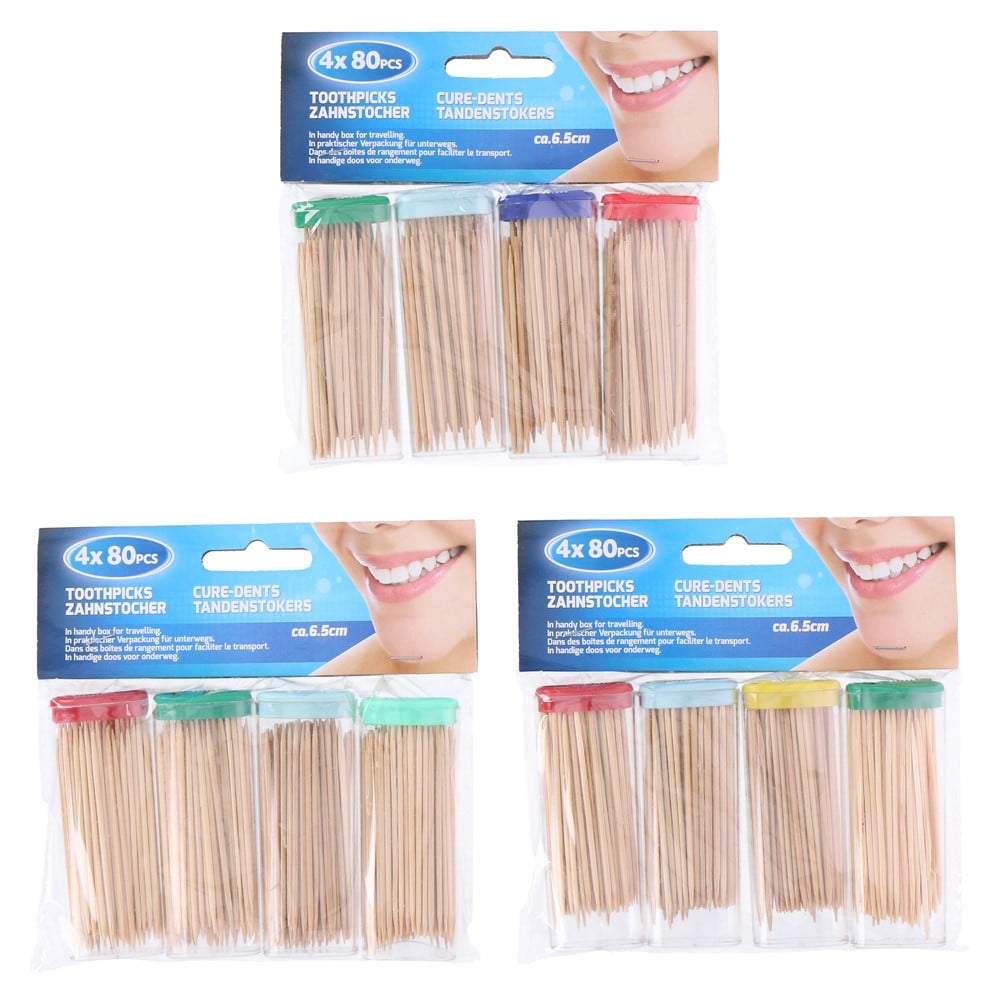 Toothpicks, dental cleaners, 4x80 pieces, bamboo wood