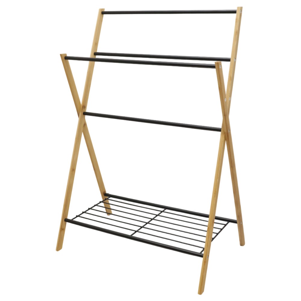 Towel hanger, ladder, bamboo, natural/black, 3 levels, 60x37xH86.5 cm