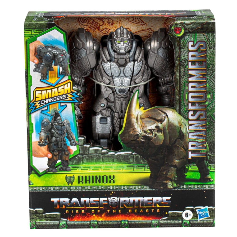 Rhinox, the strong Maximal warrior, quickly converts to robot mode and charges onto the battlefield. Smash Changers figures are based on characters from the new Transformers movie, Transformers: Rise of the Beasts! Figures convert from alt mode to robot mode in 3 steps by breaking. The battle on Earth is no longer between the heroic Autobots and the evil Decepticons.