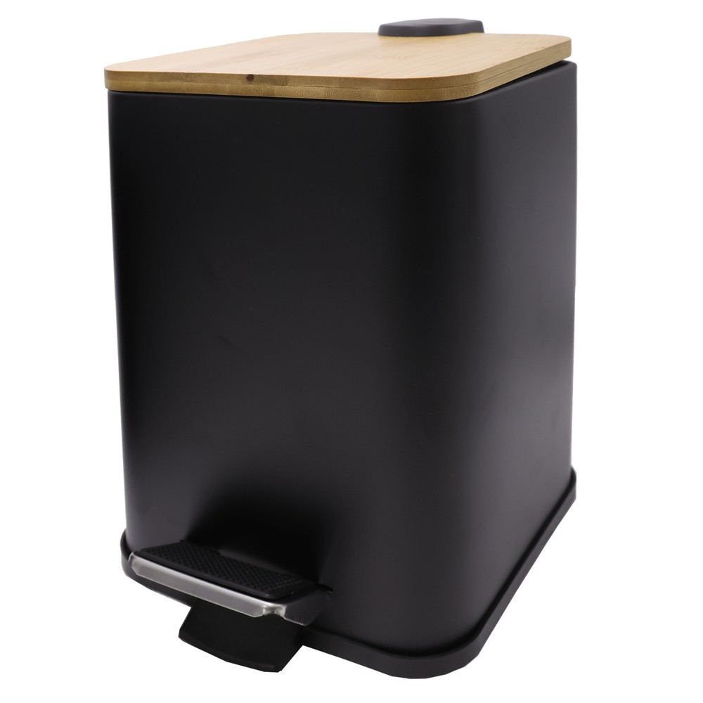 With a capacity of 5 liters, this waste bin is very compact and is therefore ideal for small spaces such as toilets, kitchens and offices. Despite its small capacity, the bin is very elegant and looks very luxurious due to its black color and bamboo lid. The color is perfect and can be combined with dark and light colors.