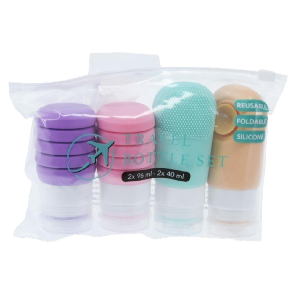 This travel set is ideal for storing cosmetics. With two large 96ml bottles and two small 40ml bottles, it's perfect for shampoo, lotion or personal hygiene during the flight. The bottles are soft, flexible and practical. Easily organize everything inside the bag for neat and leak-free storage.