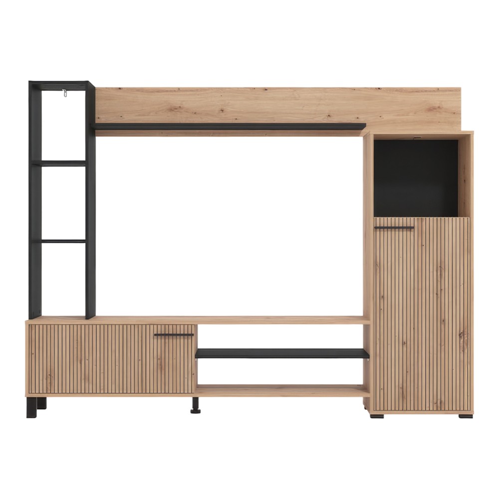 TV cabinet and display, Retmino, melamine, natural oak/black, 207.5x33xH157.5 cm