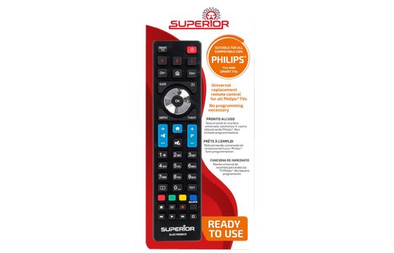 The universal remote control for Philips TVs. Universal remote control for Philips TVs built since 2000. Just insert batteries and is ready to use: does not require any programming. All Smart TV and 3D main functions.
