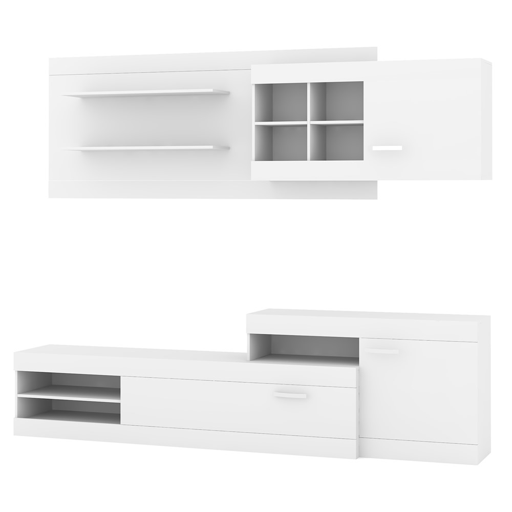 The TV cabinet with display offers a refined style and enough space to place the TV as well as display other decorative objects. With a clear and sophisticated design, this furniture best matches modern or classic environments. White color gives it an elegant touch, making it suitable for any environment.