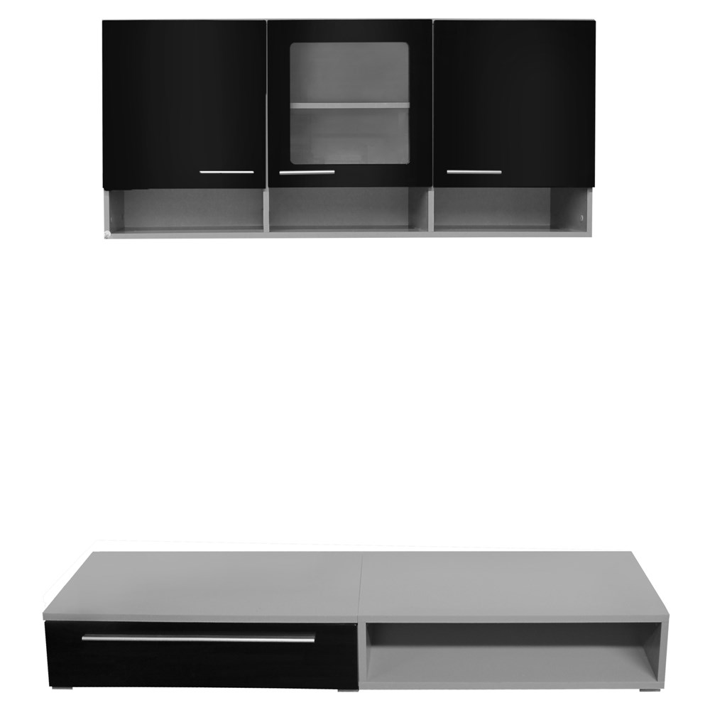 TV unit, MAXIMUS, melamine and MDF, grey/black, 180x200xH45 cm