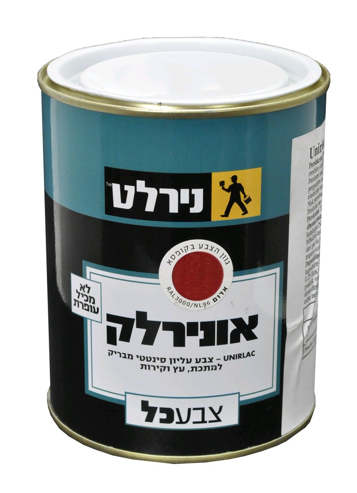 Oil paint Unirlaque 750 ml red color. A high quality enamel paint that can be applied on every wooden and metal surface, intended for both, interior and exterior use. Glossy topcoat based on selected synthetic resins. Bears Israel Standards Mark 765. Intended for painting metal, wood and walls after suitable preparation and application of primer. Special Features: High gloss, maximal flexibility,high durability under exterior conditions, doesn’t contain lead, spreads very well when applied by brush, intended for decorative painting on top of a suitable primer. Thinner: Dilution quantity (by volume) up to Brush 5%, rolle 5%, sprayer 20%. Shades In RAL shades or according to the Nirlat Millennium color fan. Gloss High, Theoretical coverage (m2/l) Approximately 12, depending on shade. Dry to touch 2-3 hours