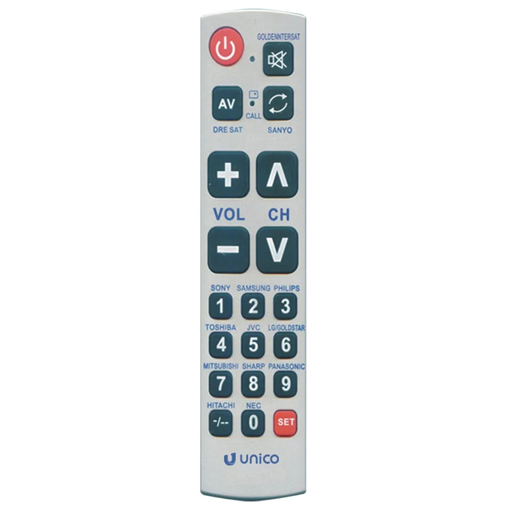 The Unico RT9661 universal TV remote control is a practical and convenient accessory for managing multiple TV devices simultaneously. With an ergonomic design and easy use, it offers quick and reliable control over the main functions of most TVs. The gray color gives it a modern and discreet look, which easily fits into any environment. This remote control is the ideal solution for those looking for convenience, efficiency and a simple way to control their TV without the need for the original remote control.
