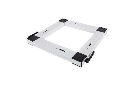 Universal wheeled anti-vibration base for appliances. Use the wheels on the bottom of the base to easily move your heavy devices forward or backward. Ergonomic brake system. Strong metal structure. Electrostatic paint resistant to heavy use. Load capacity: 250 kg. Adjustable structure 37x37cm – 62x62cm. Anti-vibration rubber feet.