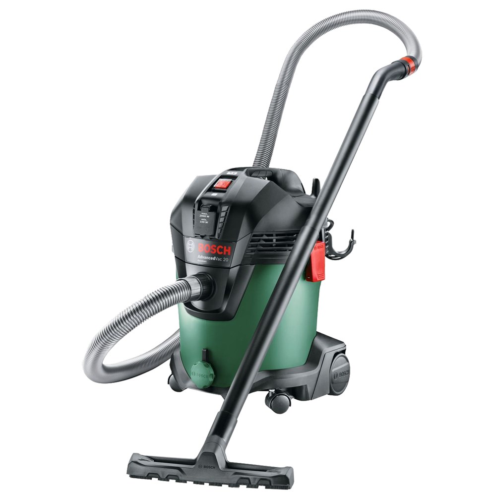 Space-saving storage of the vacuum cleaner thanks to the convenient attachment of hose and accessories. All the required accessories are stored directly on the vacuum cleaner and are therefore quickly to access at all times during extraction. Universal adapter facilitates direct dust extraction when working with all Bosch Home & Garden power tools. Other product advantages: Allows you to work flexibly even in hard-to-reach places thanks to the narrow crevice nozzle and 2.2 metre-long hose. Connecting power tools to the vacuum cleaner allows to have the vacuum cleaner be switched on and off automatically by operating the power tool. A comprehensive range of accessories facilitates a variety of applications and vacuuming of various materials