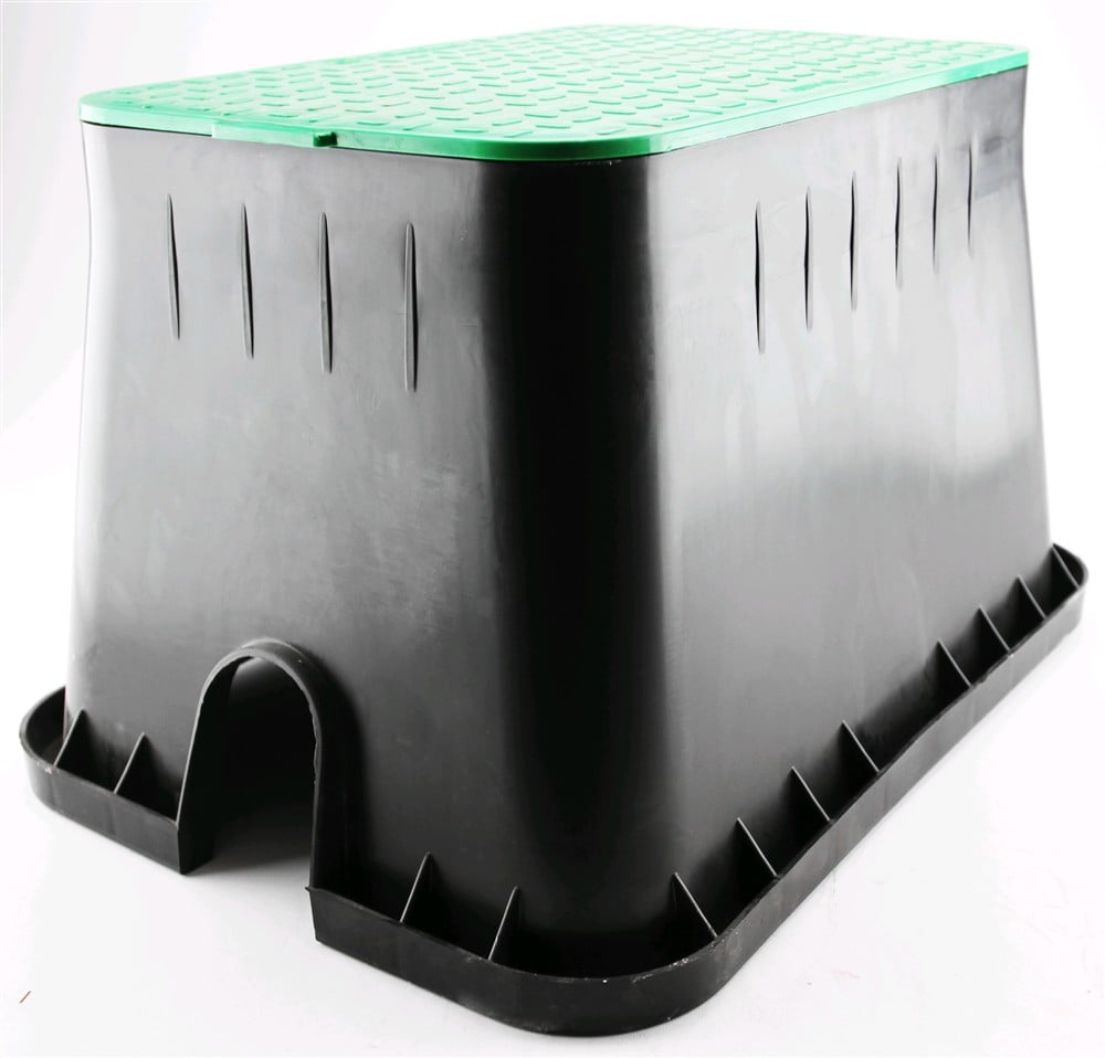 The Valve Boxes are rectangular (12”) H302xW504/414xw282mm plastic which allow easy access to electrovalves and manual valves which are used in garden irrigation installations. The Valve Box are produced from polypropylene