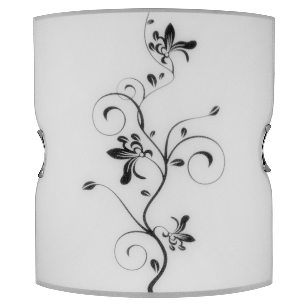 Wall lamp E27-1x60W.30x27cm/Bended glass with black flower pattern,Satin nickel.Light is an element that distinguishes and transforms the space, creating contrasts of light and light-shadow volumes highlighting architectural details of interior spaces. Illuminating the wall with square shape, consisting of curved glass white with floral motifs in black, brings chic, contemporary style and opportunity to combine the elements of your decor with color gray, blue, black, red etc.. Look for details that make the difference, that add style and refine your spaces aesthetically and functionally with a more economical price.