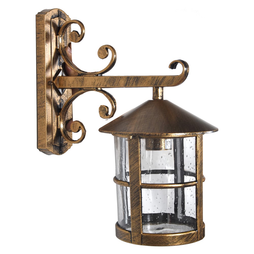 Exterior wall lamp made of metal / glass material brings warmth and style to your premises. Used in murals, bars, restaurants, etc. Combines with the classic style environment and dark colors. Used with 10 W LED lamps, illuminates surfaces up to 15 m2.