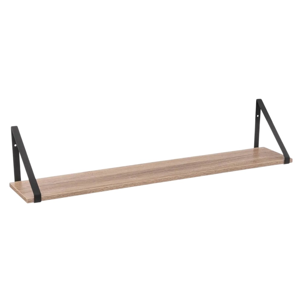 Enhance the style and functionality of your space with this elegant wall-mounted shelf. Featuring a beautiful combination of natural colored melamine and black metal brackets, the shelf creates a modern contrast that fits seamlessly into any setting, whether it’s the living room, kitchen, or office. Perfect for displaying decorations, books, or small items, this shelf offers smart organization without taking up much space.