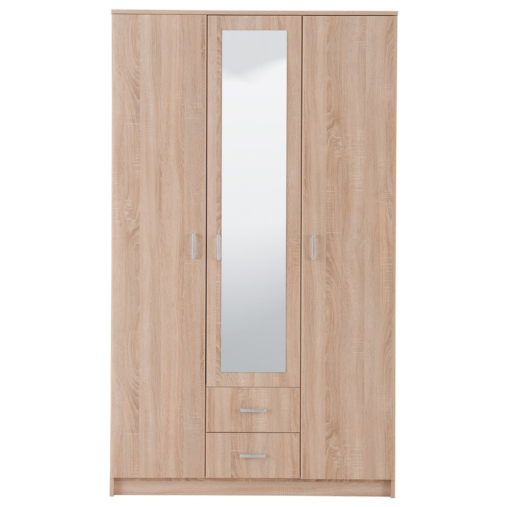 The elegant triple-winged model of the cupboard HANA 3K2FO, with a wardrobe rail, three or four shelves and two drawers, will contribute to the functional organization of the ambience. The mirror in the middle section of the wardrobe HANA 3K2FO will aesthetically enrich the living space.