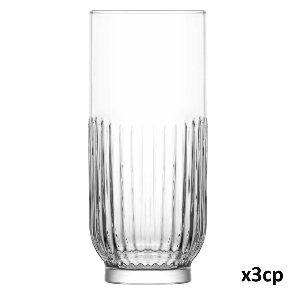 "Tokyo" water/drink glasses come in a set of three transparent glass glasses. The glasses have a height of 15 cm and their capacity is 395 ml.