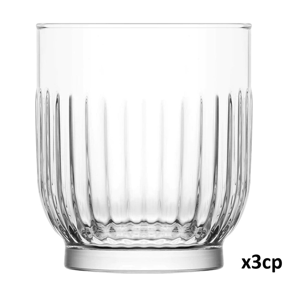 "Tokyo" water/drink glasses come in a set of three transparent glass glasses. The glasses have a height of 9 cm and their capacity is 330 ml.