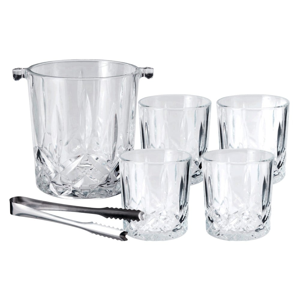 Whisky set with ice bucket (6 pieces), glass, transparente