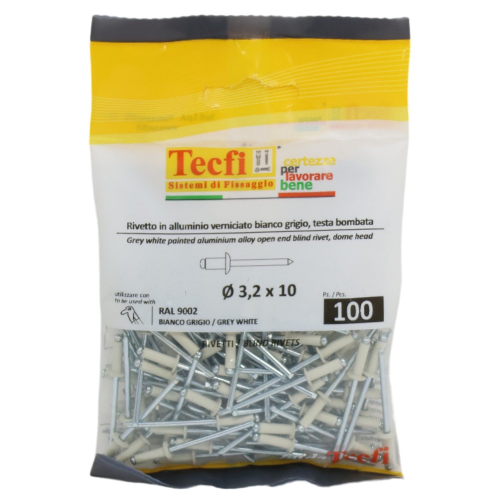 white dome blind rivets, al/zp steel ISO 15977-RAL 9002 grey, Ø 3,2x10mm, Bag 100