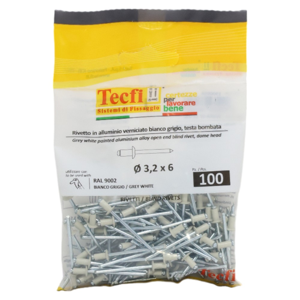 white dome blind rivets, al/zp steel ISO 15977-RAL 9002 grey, Ø 3,2x6mm, Bag 100