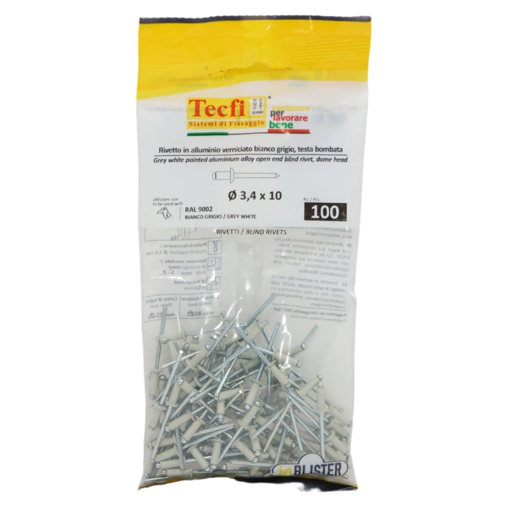 white dome blind rivets, al/zp steel ISO 15977-RAL 9002 grey, Ø 3,4x10mm, Bag 100