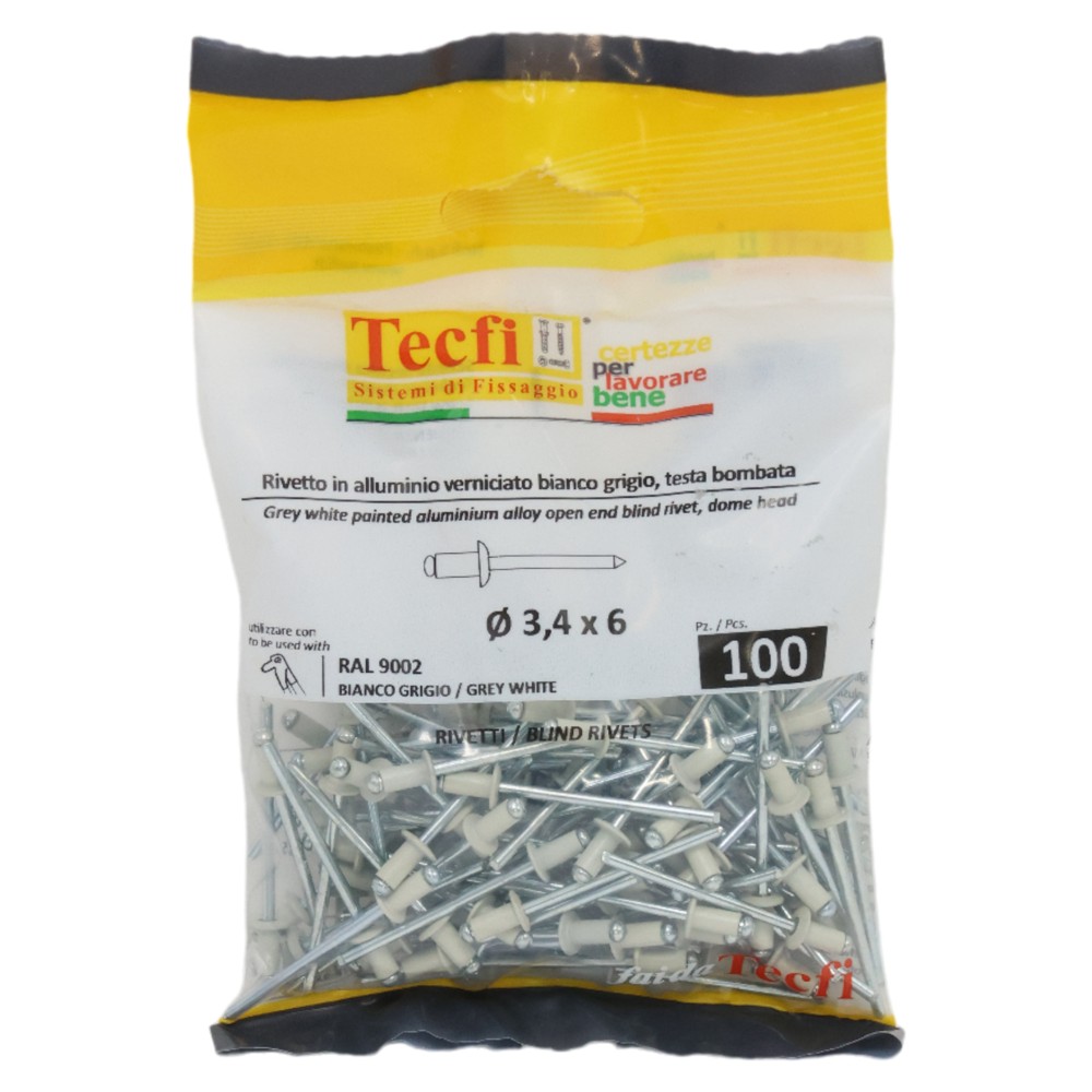 white dome blind rivets, al/zp steel ISO 15977-RAL 9002 grey, Ø 3,4x6mm, Bag 100