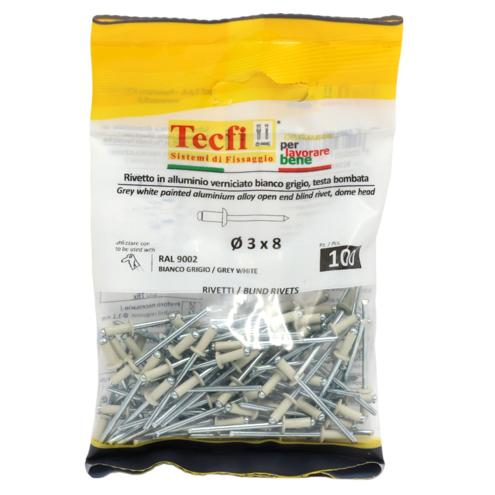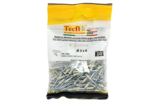 white dome blind rivets, al/zp steel ISO 15977-RAL 9002 grey, Ø 3x8mm, Bag 100