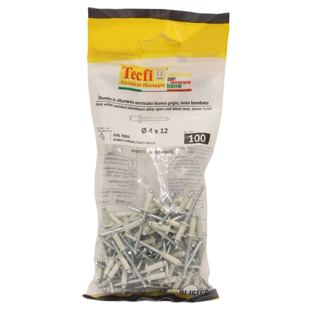 white dome blind rivets, al/zp steel ISO 15977-RAL 9002 grey, Ø 4x12mm, Bag 100