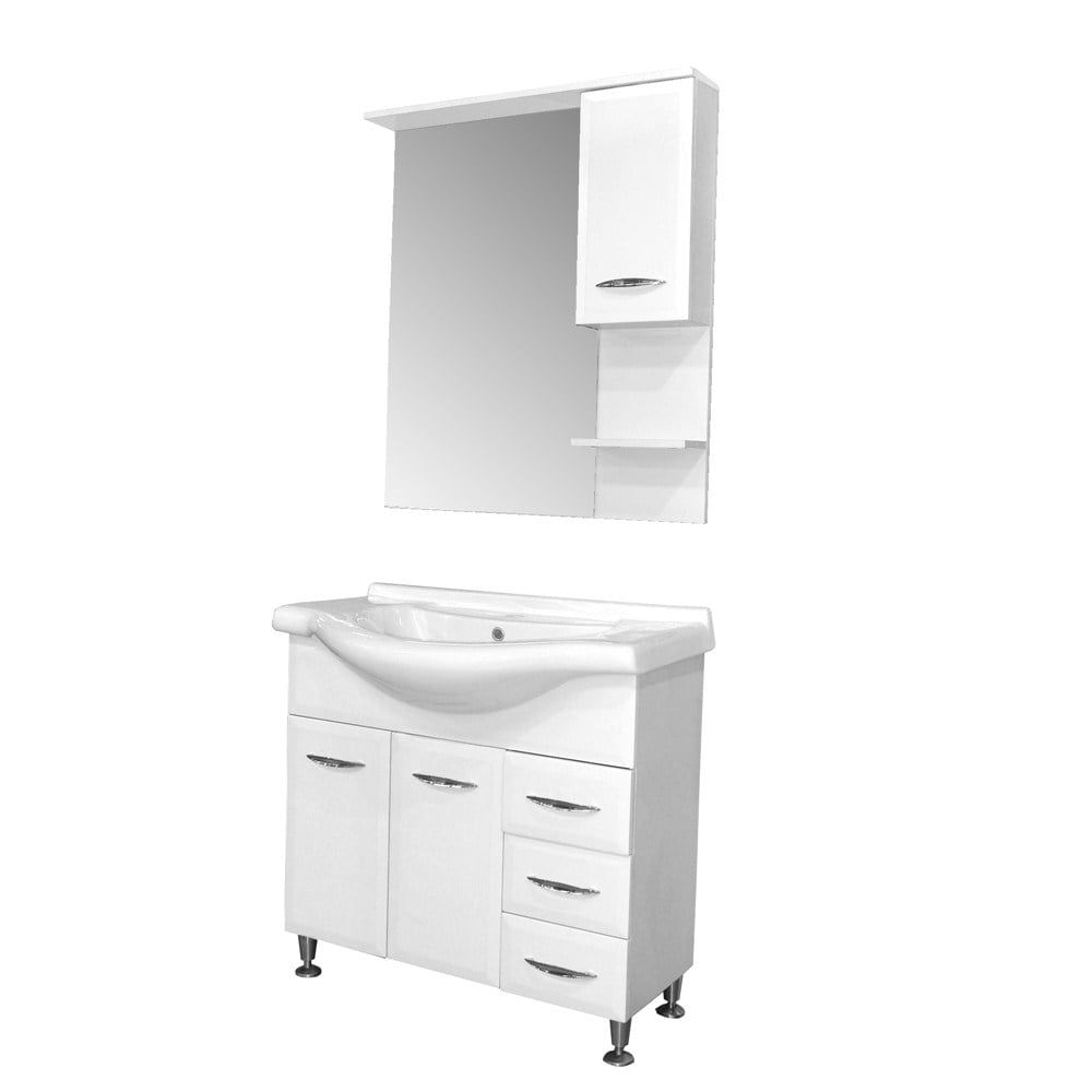 The “Bianca” - complete set of bathroom furniture presents an elegant design that will rejuvenate your bathroom. The porcelain basin offers a stylish design easy to clean and durable surfaces for long-lasting beauty for medium and large spaces of your bathroom. The collection’s material is MDF which offers high-humidity resistance.White color can be easy combined with modern tiles of different monochrome colors.his is a collection that includes: basin, basin- cabinet, mirror . All of the components are pre-assembled and ready-to-install in a quick and easy way. With “Bianca” set you can remodel your bathroom anytime your space needs even more storage. The complete bathroom makeover with “Bianca” brings innovation and fun in your home.