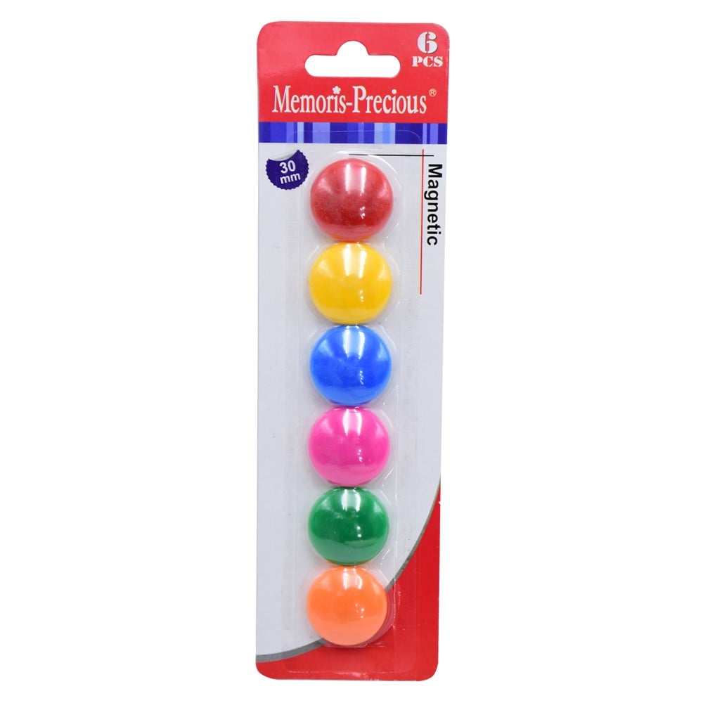 Whiteboard magnets set, which contains 6 magnets, made of metallic material, in different colors, with Emoji figures. The magnets can be used to place different works on whiteboards or to present different projects. This product is suitable for use in kindergartens, schools, home environments, etc.