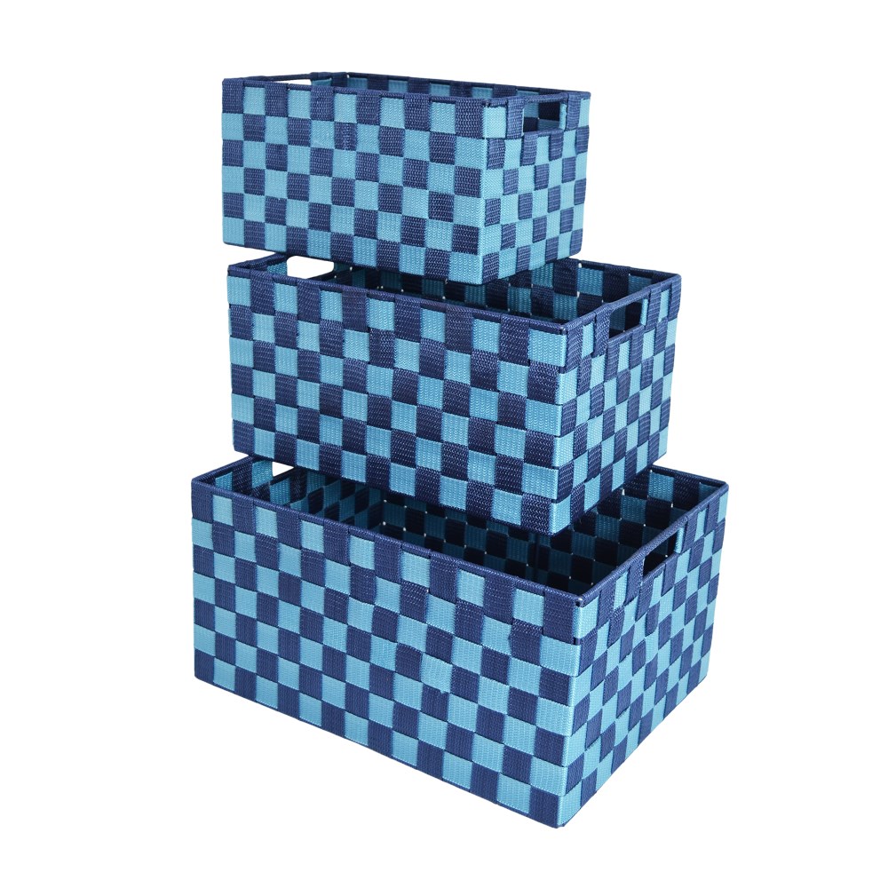 Whether as a decorative piece or as a part of your storage and organization system, this fun basket is sure to become a favorite part of your home decor. Nylon hand made basket inspired finish, you will love having this piece next to your sofa or arm chair to store magazines, newspapers and more. Order yours today. Sizes: 40x30x20 cm; 35x25x18 cm; 30x20x16 cm