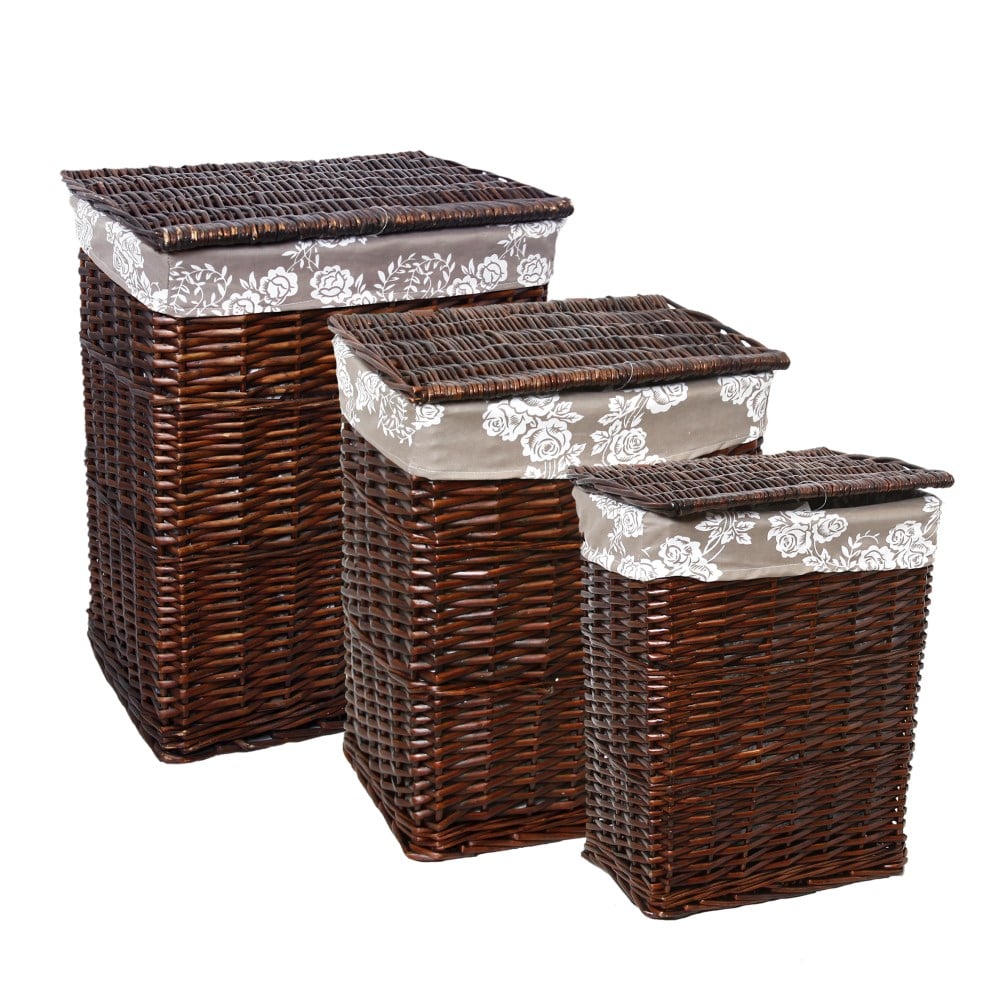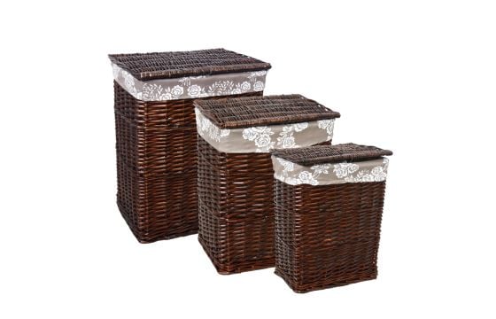 Whether as a decorative piece or as a part of your storage and organization system, this fun basket is sure to become a favorite part of your home decor. Willow hand made basket inspired finish, you will love having this piece next to your sofa or arm chair to store magazines, newspapers and more. Order yours today. Sizes: 45x33xH57 cm; 38x27xH48 cm; 31x21xH39 cm