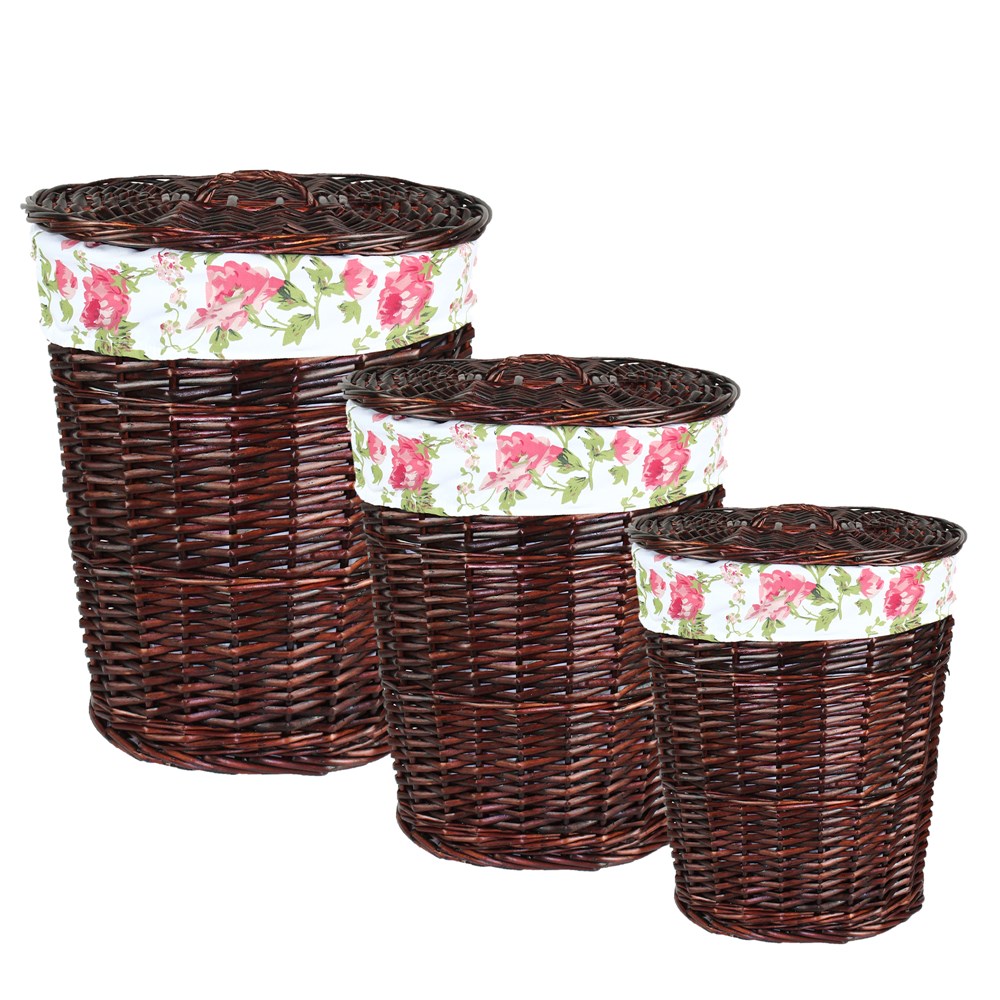 Whether as a decorative piece or as a part of your storage and organization system, this fun basket is sure to become a favorite part of your home decor. Willow hand made basket inspired finish, you will love having this piece next to your sofa or arm chair to store magazines, newspapers and more. Order yours today. Sizes: 50x37xH57 cm; 40x31xH48 cm; 33x24xH38 cm