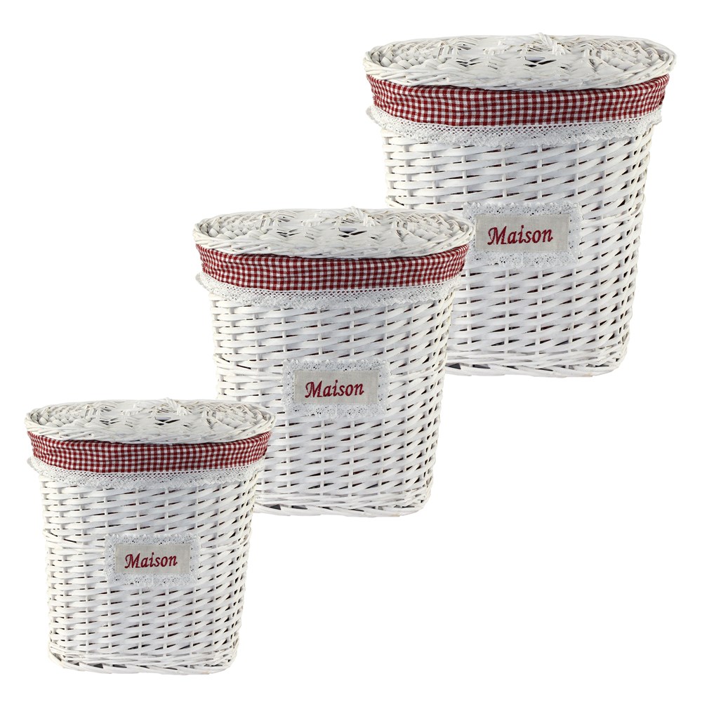 You're reviewing:Wicker box set of 3 pieces, willow and textile, red/white, 49x37.5xH43 cm; 39.5x31xH42 cm; 32.5x24xH32.5 cm