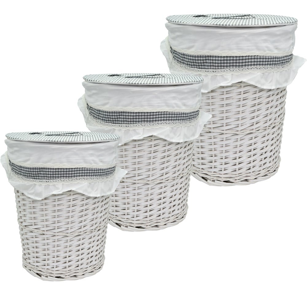 Whether as a decorative piece or as a part of your storage and organization system, this fun basket set is sure to become a favorite part of your home decor. This willow hand made basket set inspired finish can be used in laundry, bedrooms or living rooms adding style and functionality. The set consist of: 1-Dia.29 xH38 cm; 1-Dia.37 xH47 cm; 1-Dia.45 xH56 cm