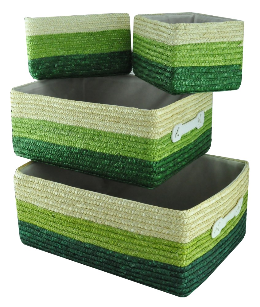 Wicker box set of 4 pieces, straw, green/white, 41x31xH17 cm; 37x27xH16 cm; 24x16xH14 cm